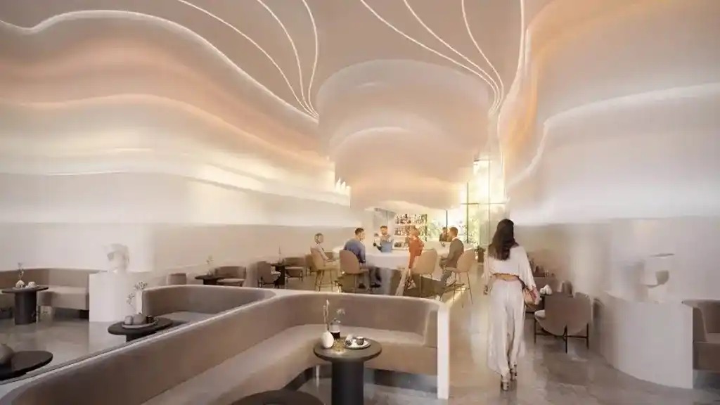 Double-height, elegantly designed lobbies with luxurious seating areas, providing a grand and welcoming atmosphere.